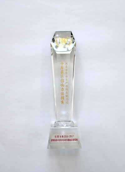 公司榮獲全國百佳(優秀)農資經銷商 “十年最具影響力經銷商”稱號