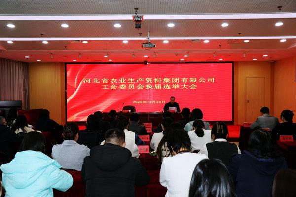 本網訊    根據《中華人民共和國工會法》《中國工會章程》等相關規定,經省社工會批準,12 月 22 日下午,河北省農業生產資料集團有限公司工會委員會召開換屆選舉大會,46名工會會員代表參加會議,集團公司領導班子、第五屆工會委員會委員列席會議。會議由集團公司第五屆工會委員會副主席于豐廷主持。