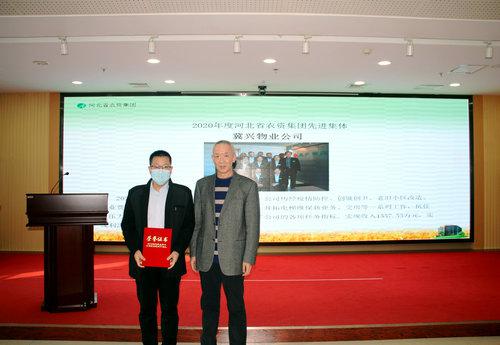 任海(右)為冀興物業公司頒發“2020年度先進集體”榮譽證書