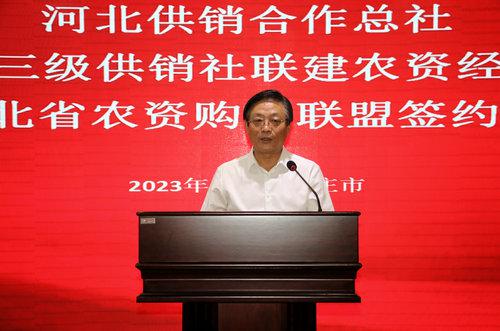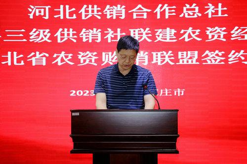 此次河北省三級(jí)供銷社聯(lián)合建設(shè)農(nóng)資經(jīng)營(yíng)體系簽約儀式,是深入貫徹落實(shí)黨中央關(guān)于“完善農(nóng)資保供穩(wěn)價(jià)應(yīng)對(duì)機(jī)制”、保障糧食安全、創(chuàng)新農(nóng)業(yè)生產(chǎn)服務(wù)方式、深入推進(jìn)供銷社綜合改革、健全完善農(nóng)資服務(wù)網(wǎng)絡(luò)、有效提升農(nóng)資經(jīng)營(yíng)服務(wù)能力、拓展終端市場(chǎng)的重大舉措。河北省農(nóng)資集團(tuán)全面貫徹黨的二十大精神,深入學(xué)習(xí)貫徹習(xí)近平總書記重要講話和重要指示精神,牢記“國(guó)之大者”,繼承發(fā)揚(yáng)“背簍精神”“扁擔(dān)精神”,堅(jiān)守服務(wù)“三農(nóng)”初心,主動(dòng)擔(dān)當(dāng)作為,做優(yōu)做強(qiáng)主業(yè),充分發(fā)揮農(nóng)資流通主渠道作用,為農(nóng)民提供優(yōu)質(zhì)、優(yōu)價(jià)、綠色農(nóng)資商品,為糧食生產(chǎn)安全,建設(shè)農(nóng)業(yè)強(qiáng)省貢獻(xiàn)供銷力量。