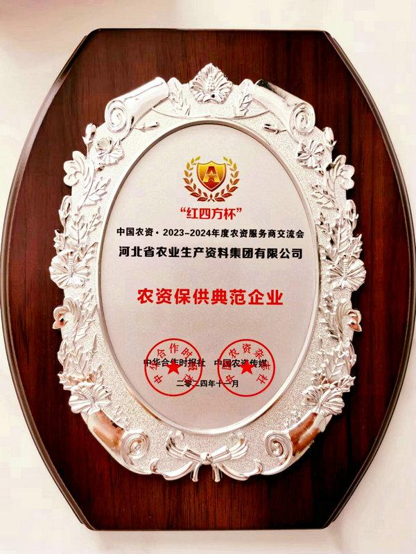同日,由中華合作時報社、中國農資傳媒、中國磷復肥工業協會主辦的“‘紅四方杯’中國農資?2023-2024年度農資服務商交流會”在南京舉行。會上發布了2023-2024年度農資服務商典范企業名單,集團公司榮獲“農資保供典范企業”榮譽稱號。