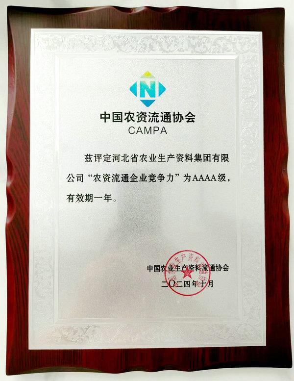 喜報|集團公司榮獲“2024年度農資流通企業競爭力AAAA級”等多項榮譽