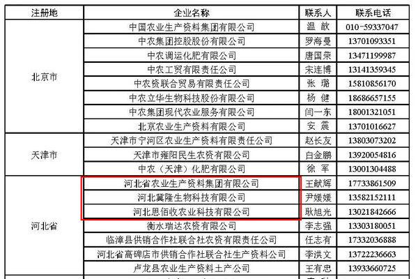 本網訊    近日,中華全國供銷合作總社向社會公布了2025年全國供銷合作社農資保供重點企業名單,241家企業入選。河北省農資集團及旗下河北冀隆生物科技有限公司、河北思佰收農業科技有限公司入圍農資保供重點企業。