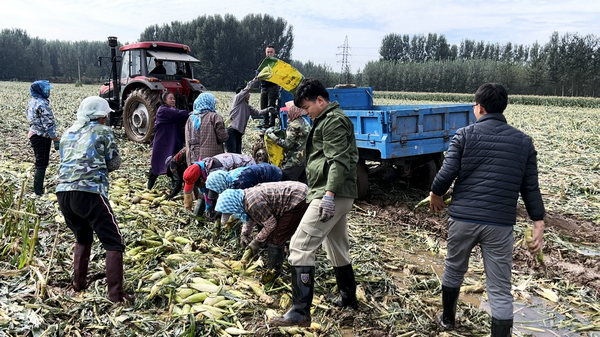 本網訊    國慶中秋雙節歡慶之際,正值灤南豐安的甜玉米與青貯作物進入成熟關鍵期,但連綿陰雨不期而至,田間積水嚴重,作物倒伏、霉變風險加劇,豐收成果面臨嚴峻威脅。面對嚴峻災情,中農豐安公司啟動應急預案,全體員工放棄休假,火速行動,晝夜奮戰,打響了一場與時間賽跑、與風雨搏斗的搶收戰。