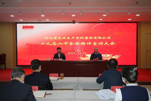 本網訊    2021年12月26日,河北省農資集團公司在河北農資大廈召開黨員干部大會,深入學習宣傳貫徹黨的十九屆六中全會精神,由省供銷社監事會主任、集團公司黨委書記、董事長李平現對全會精神進行宣講,集團公司黨委副書記任海主持會議。集團公司班子成員、各單位負責人及全體黨員現場參會,集團公司其他人員通過釘釘視頻參會。